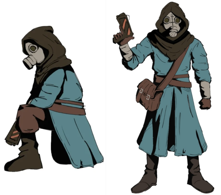 Militar con arma elemental, atravesando el mundo corrompido por fenómenos elementales, buscando una cura para la corrupción elemental.